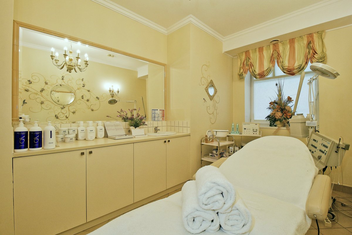 Также к услугам наших гостей шугаринг, LPG, наращивание ресниц, стрижка и окрашивание волос, детский парикмахер, традиционный и аппаратный маникюр, шеллак, гель-лак, наращивание и дизайн ногтей, косметология, в том числе аппаратная, пилинг, обертывания, миостимуляция, вакуумный массаж, контурная пластика, биоревитализация, мезотерапия, мезонити, инъекции ботокса, гиалуроновая кислота, коррекция формы бровей, окрашивание ресниц, татуаж, мелирование, тонирование, выпрямление, наращивание, укладка, химическая завивка, биозавивка и маски для волос, вечерние прически, мужские стрижки, стрижка бороды и усов, педикюр, в том числе аппаратный, спа-уход для ногтей. Принимает трихолог, специалист по мезотерапии кожи головы.